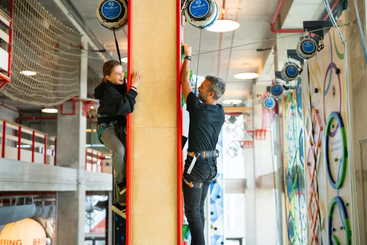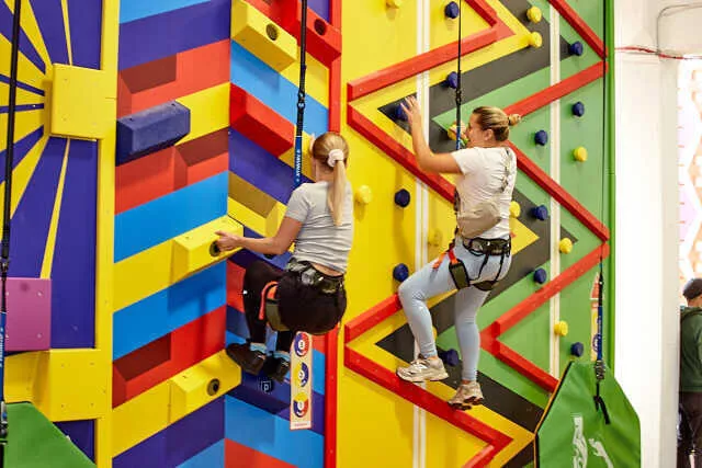 Our safe autobelay system means you can approach this brand new activity with confidence. Come as you are. Harness in hand, everyone climbs at their own pace, without pressure.