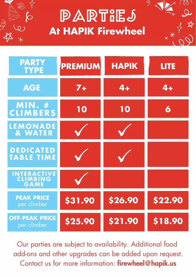 We offer competitive rates for schools, as well as community groups. From age 4+ with a minimum of 10 climbers.