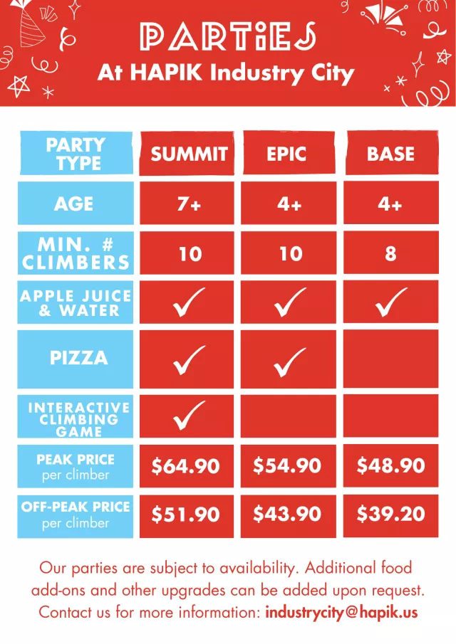 • Free access to HAPIK's Interactive Climbing Game, dependent on availability.
